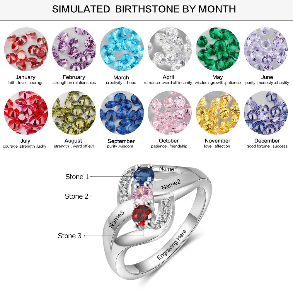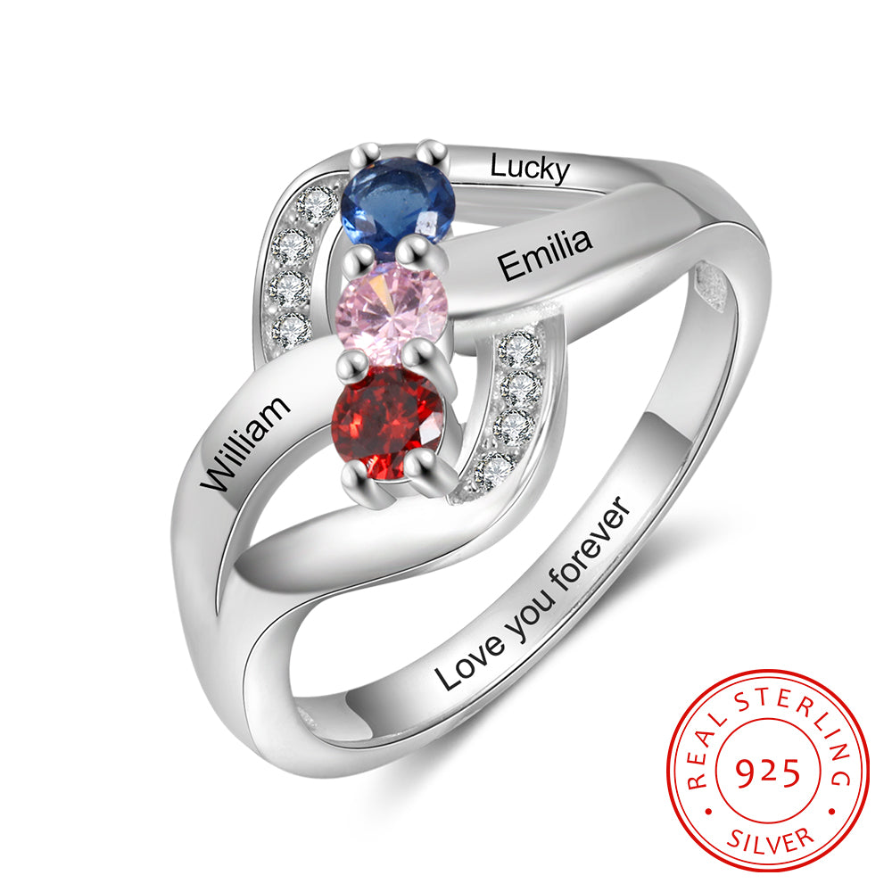 Personalised Sterling Silver Engraved Ring with simulated birthstones (CZ) Personalised Birthstone Ring | Custom Engraved Ring with Birthstones | Bespoke Birthstone Ring Personalised Gift Ideas For Her | Personalised Gift For Mom | Gift Ideas For Wife Birthday Gift Ideas For Her | Anniversary Gift For Her | Graduation Gift Ideas For Her | Personalised Birthday Gift For Mom |