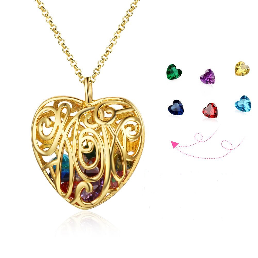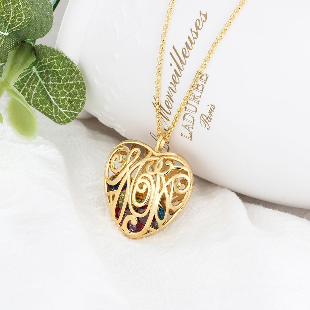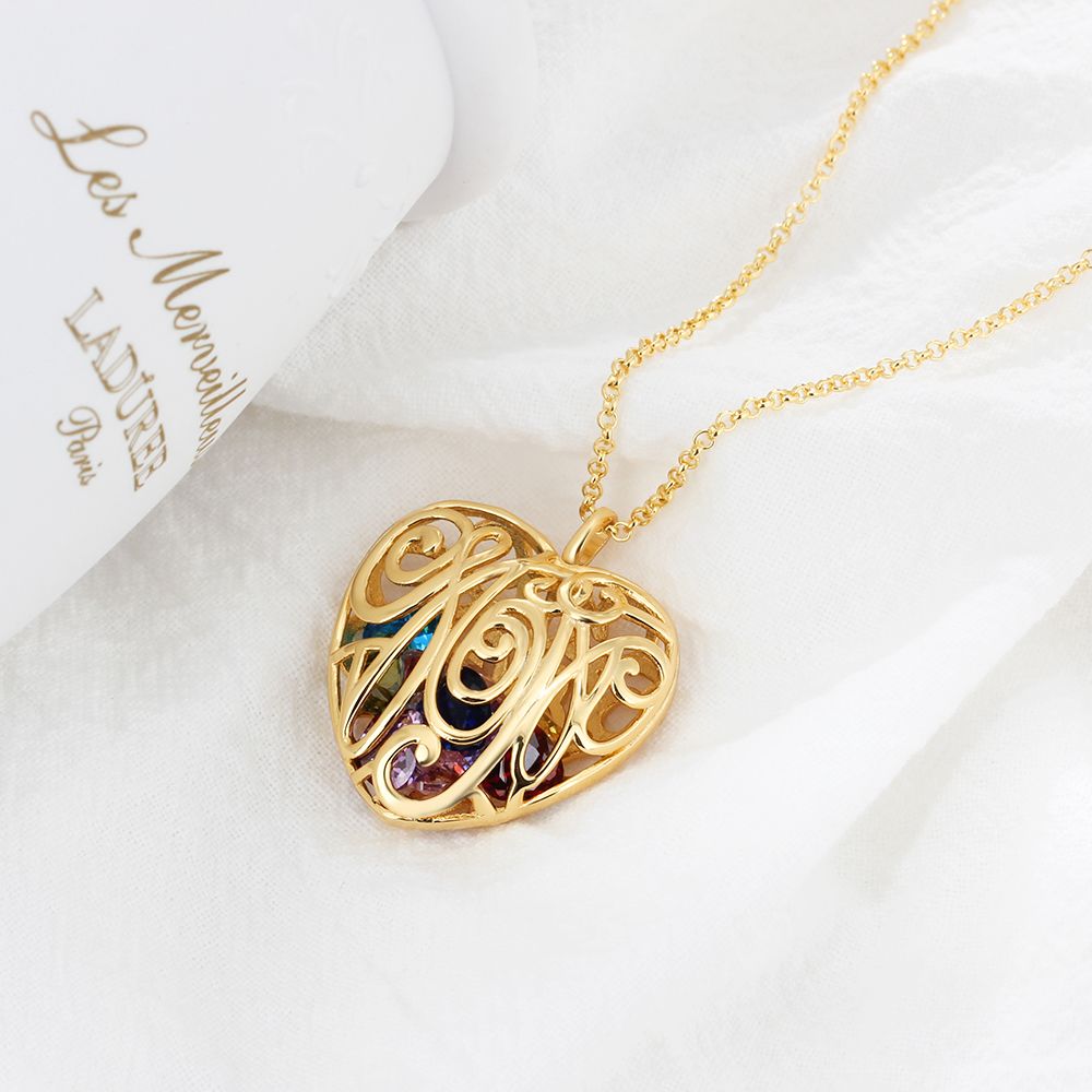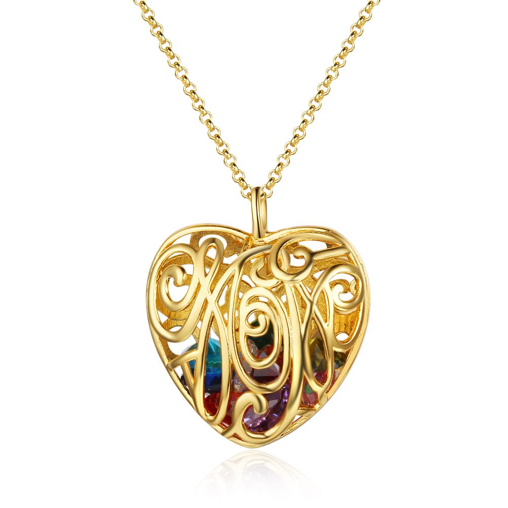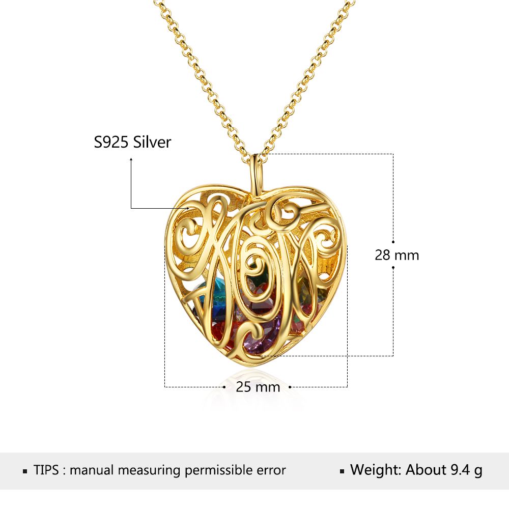 Bespoke Necklace " IN MY HEART" Personalised Silver Yellow Gold Plated Heart Shape Cage Birthstone necklace | Personalised Birthstone Necklace